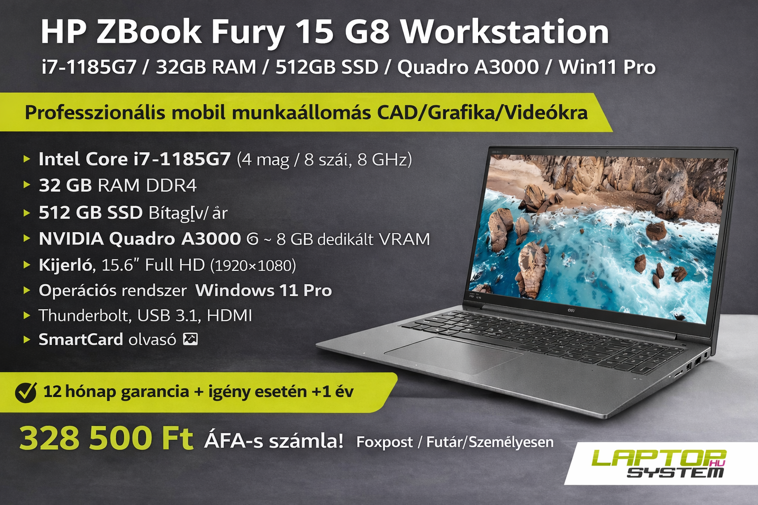 | Videokártya | NVIDIA Qvadro A3000 8GB |