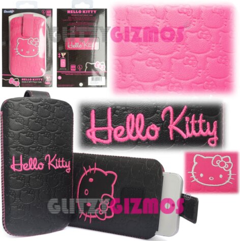 Hello Kitty Univerzális Telefontartó Bőr Tok 3.5" - Fekete-Pink
