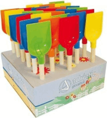 Fa nyelű, műanyag fejű homokozó lapát többféle színben. A feltüntetett ár 1 db termékre vonatkozik, melyet véletlenszerű változatban szállítunk.