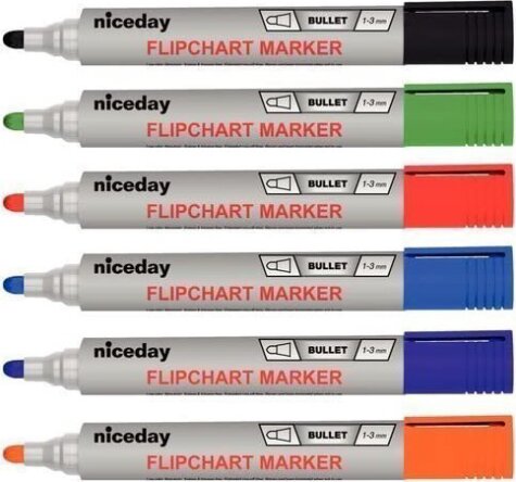 Niceday Kerek hegyű 5mm flipchart marker készlet - Vegyes (6db/csomag)