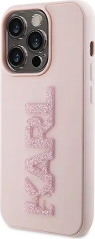 Karl Lagerfeld 3D Rubber Glitter Logo Apple iPhone 15 Pro Tok - Rózsaszín