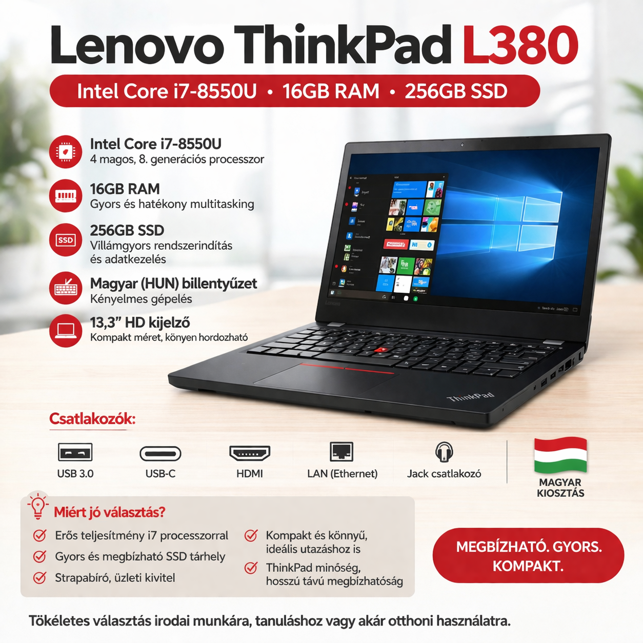 ✔ ThinkPad minőség – Strapabíró ház, üzleti szintű megbízhatóság