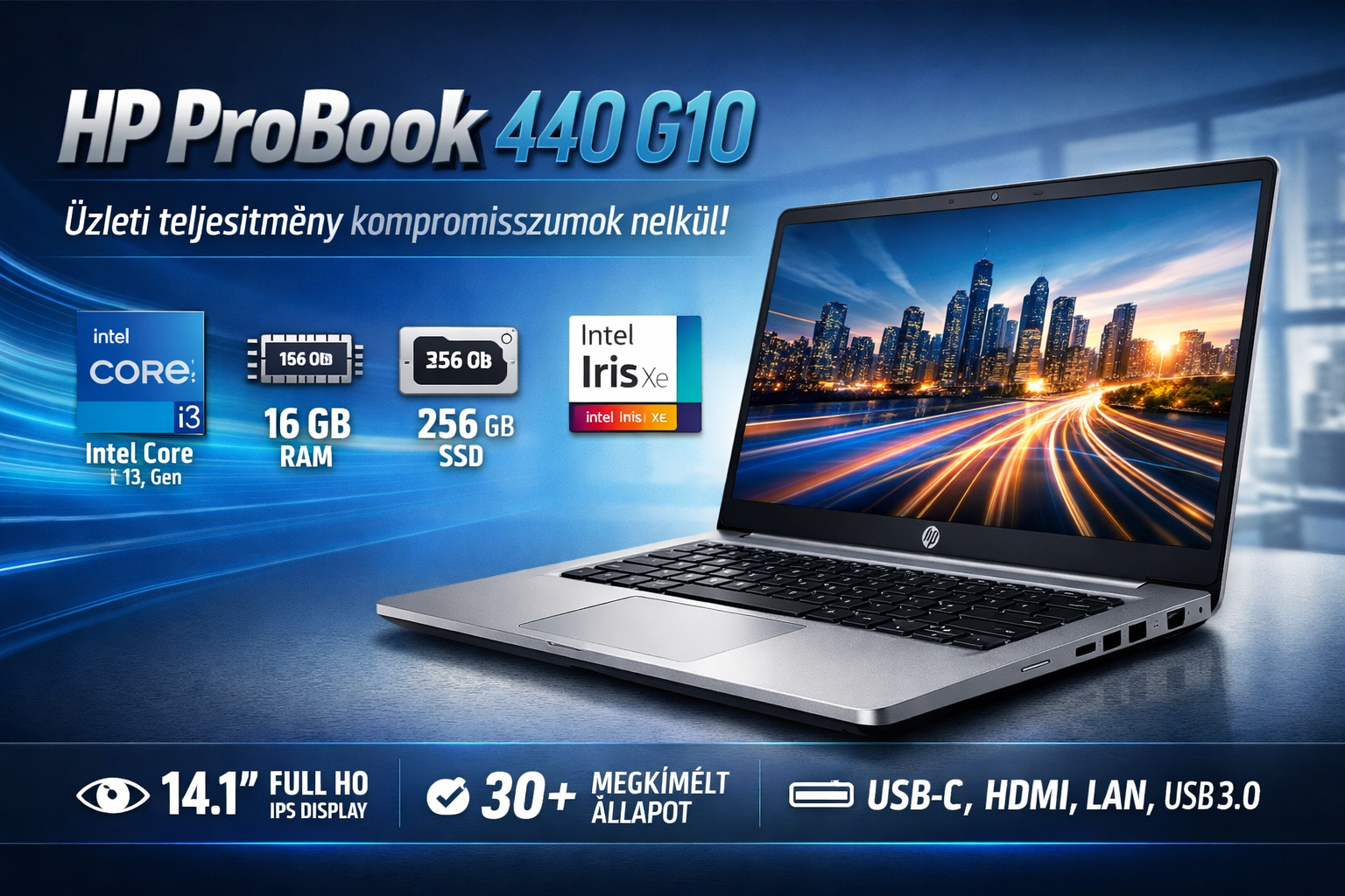 A HP ProBook 440 G10 egy korszerű, üzleti felhasználásra tervezett laptop, amely ideális választás mindennapi munkához, irodai feladatokhoz és akár otthoni használatra is. Kompakt mérete és erős hardvere miatt kiváló társ a mobil munkavégzéshez.